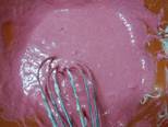 - نقوم بخلط المزيج و نضع معه كيلة ماء و كيلة فرينة ونخلط ثم نضيف الزيت، الملون،
